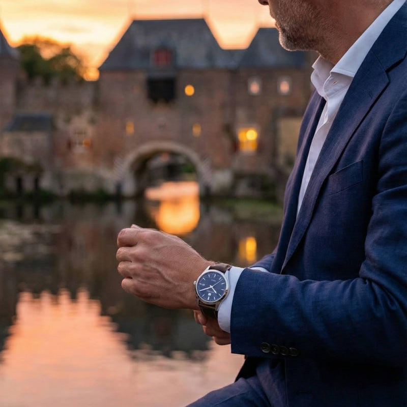 Origineel cadeau voor een 50-jarige man uit Delft: een horloge met de Oude Kerk als tijdloos symbool