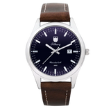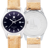 Dit klassieke, hoogwaardige horloge heeft een analoog Quartz uurwerk met keuze uit een bruin leren, grijs stoffen of een licht bruin stoffen bandje.
