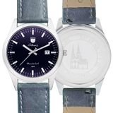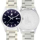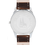 De mooiste neogotische kerk van Nederland staat in Tilburg. Deze Heuvelse Kerk met een dubbeltorenfront is van architekt Hendrik Jacobus van Tulder en is in twee fasen tussen 1872 en 1889 gerealiseerd. Stadshorloge “De Heulvelse kerk” heeft een klassieke stijl met datum en secondewijzer. Daarnaast zit er een mooie, blauwe gloed in het glas, die refereert aan de lucht en de sterrenhemel. De bovenkant van het horloge bevat een verwijzing naar Tilburg door middel van het stadswapen. Aan de onderkant staat de naam ‘De Heuvelse kerk 1889’ vermeld.