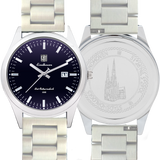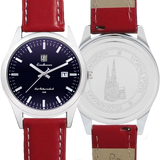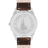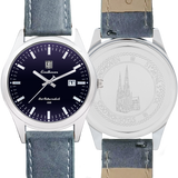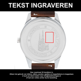 De Sint-Catharinakerk van Eindhoven heeft een voorloper gekend op dezelfde plaats. Deze kerk was echter met zijn koor naar het oosten gericht. Eindhoven werd gesticht in 1232 en voordien woonden er op deze plaats nauwelijks mensen. Stadshorloge “De Sint-Catharinakerk” heeft een klassieke stijl met datum en secondewijzer. De bovenkant van het wijzerblad bevat een verwijzing naar het wapen van Eindhoven. De onderkant van het wijzerblad staat de tekst “”De Sint-Catharinakerk 1232” . Daarnaast zit er een blauwe gloed in het glas. Uw verbondenheid met Eindhoeven en de iconische Sint-Catharinakerk is door Stadshorloges subtiel verder vormgegeven door een contourschets van de Sint-Catharinakerk op de achterzijde van uw Stadshorloge.