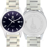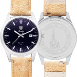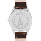 De Grote kerk van Breda uit 1410 is het belangrijkste monument van Breda. Zij heeft bovendien een nationale betekenis. Een onderdeel van de kerk wordt gevormd door de Prinsenkapel, die het mausoleum is van de vroege voorvaderen van de Nederlandse koninklijke familie, het geslacht van Nassau-Dillenburg. De kerk is hét herkenningspunt van Breda. De toren van de kerk, met zijn 97 meter hoog al van ver zichtbaar. Stadshorloge “De Grote Kerk” heeft een klassieke stijl met datum en secondewijzer. De bovenkant van het wijzerblad bevat een verwijzing naar het wapen van Breda. De onderkant van het wijzerblad staat de tekst “”De Grote Kerk 1410” . Daarnaast zit er een blauwe gloed in het glas. Uw verbondenheid met Breda en de iconische Grote Kerk is door Stadshorloges subtiel verder vormgegeven door een contourschets van de Grote Kerk op de achterzijde van uw Stadshorloge.